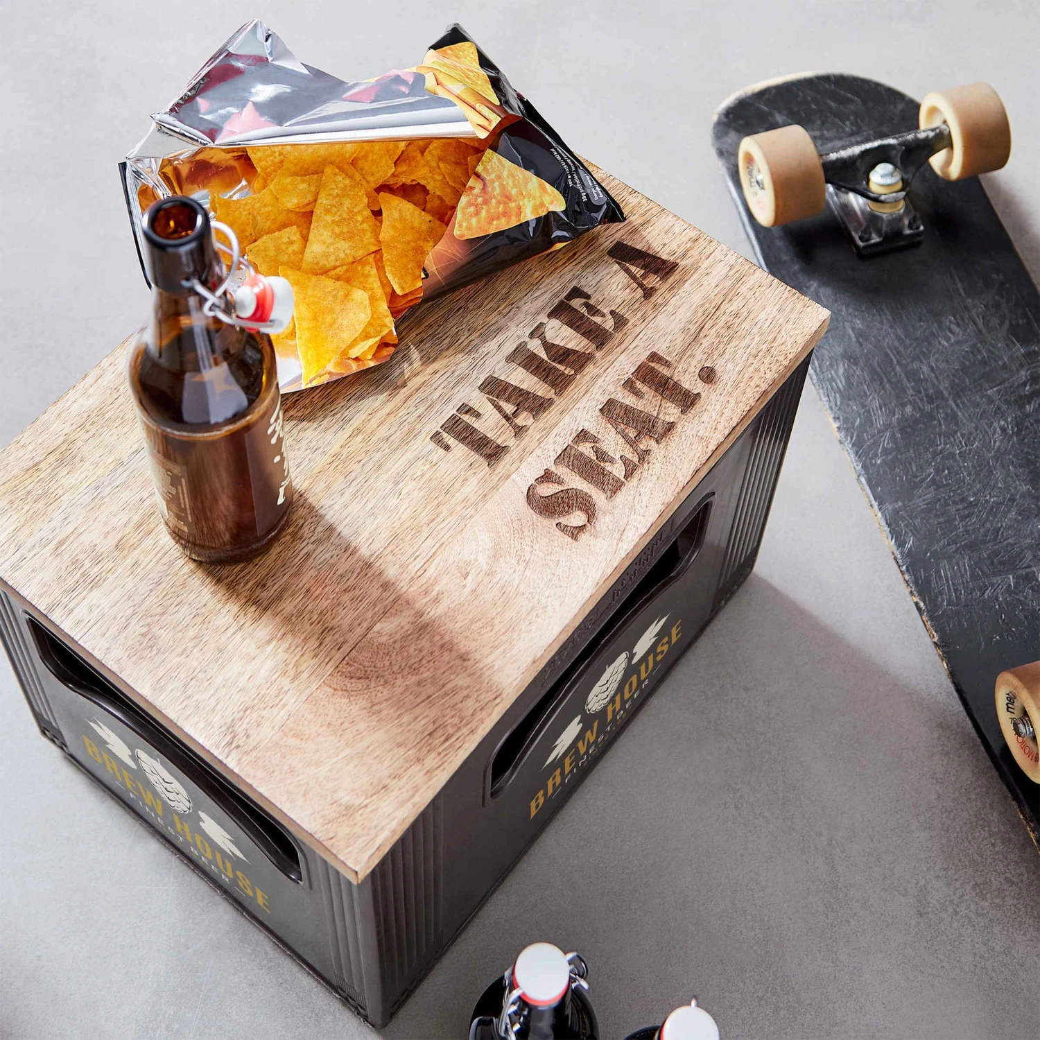 Ihre Freunde kommen auf ein Bier vorbei – und machen es sich direkt auf der Kiste gemütlich mit der Take a Seat Auflage für Bierkästen. Dieses praktische Tool aus Mangoholz passt auf jeden handelsüblichen Bierkasten und sitzt dank angebrachter Stopper einwandfrei und ohne Verrutschen. So entsteht schnell eine zusätzliche Sitzgelegenheit, und das auch dort, wo sonst wenig Platz ist, z.B. in engen Küchen oder auf kleinen Balkons. Nach Gebrauch lässt sich die Bierkasten Auflage platzsparend verstauen, oder sie funktionieren Ihre Bierkiste in einen kleinen Beistelltisch um. Tipp: Ideal auch als Geschenkidee, wenn Sie z. B. zu einer (Garten-)Party eingeladen sind.