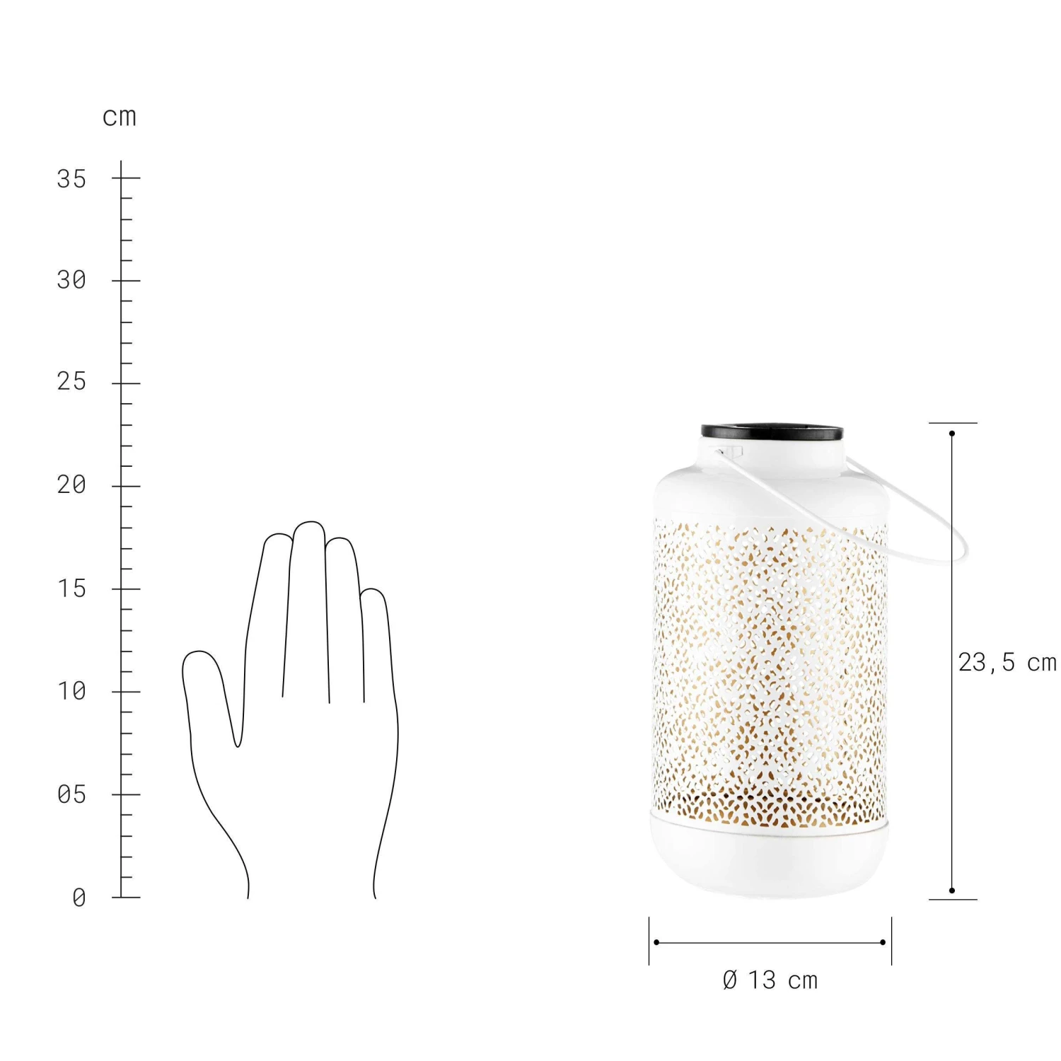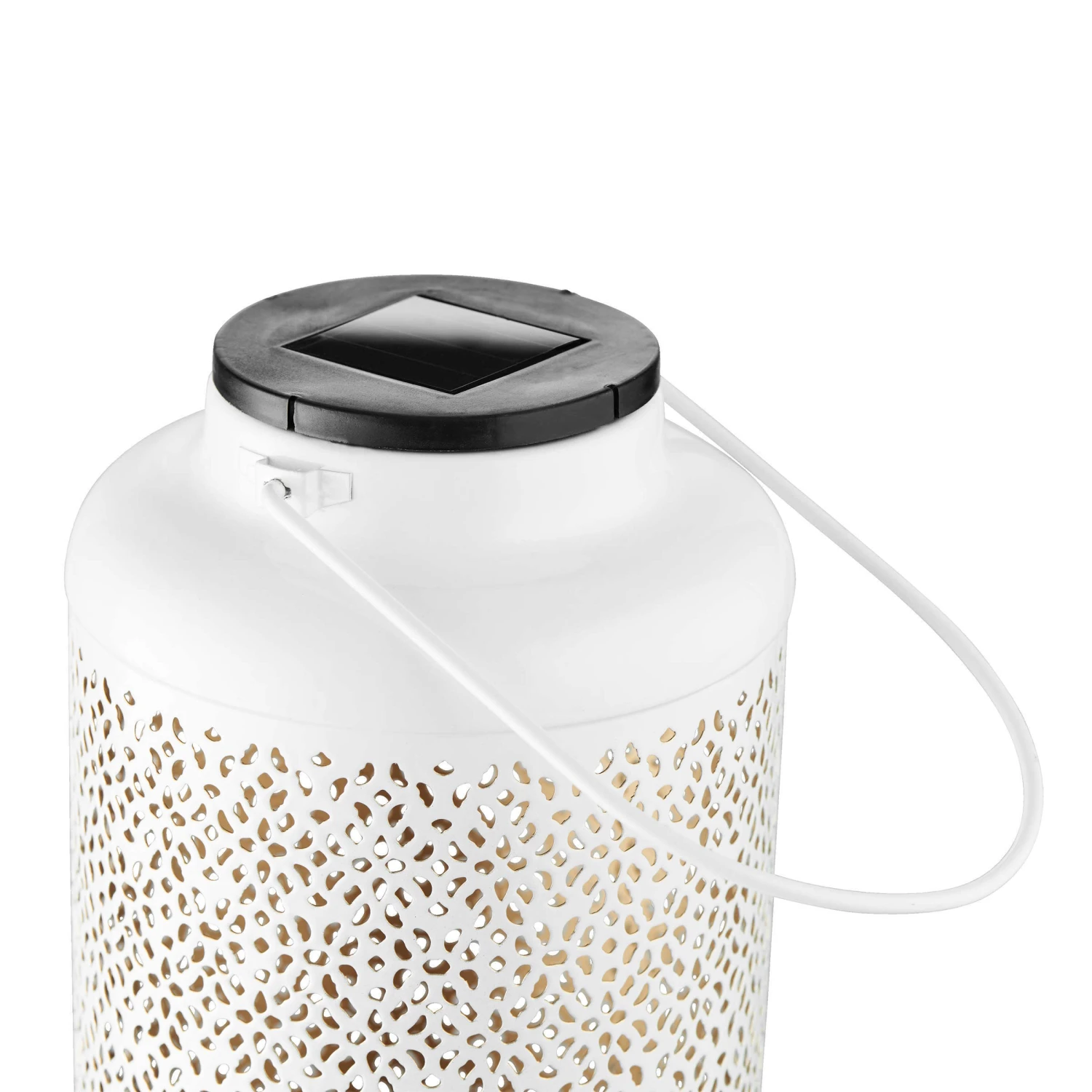 Als neue Deko-Queen lässt es die Solana Metall Laterne in Ihrem Zuhause so richtig funkeln. Die Solar-Laterne verspricht Ihnen nicht nur im In- sondern auch im Outdoorbereich strahlende Stunden, ohne sich groß um das Licht kümmern zu müssen. Stellen Sie die Lampe über den Tag einfach in das Sonnenlicht um sich aufzuladen und genießen Sie Abends ihr Lichterspektakel. Der Solarbereich hält sich schlicht in Schwarz, doch dafür glänzt das Innere der Lampe in Gold. In weiteren Farben erhältlich.