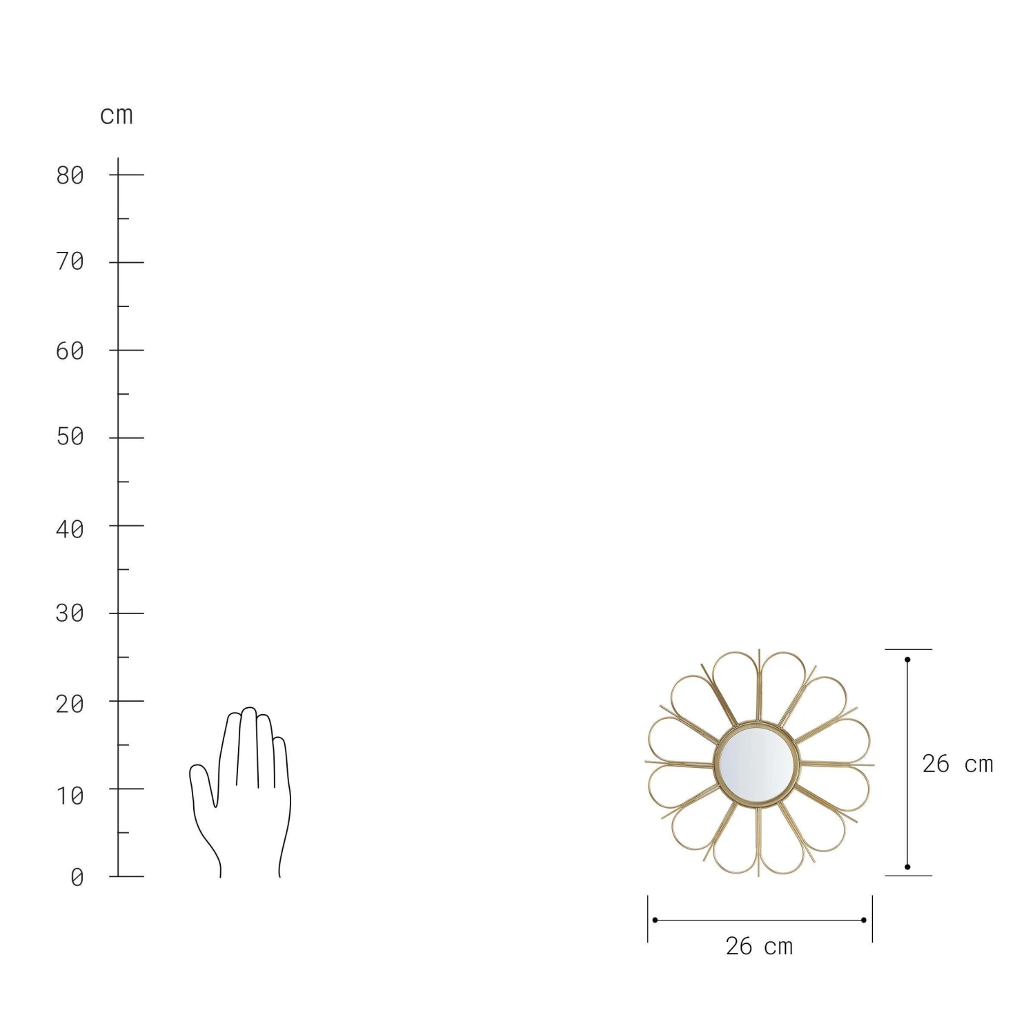 Spiegel statt Bild: Der runde Fiore Metallspiegel Blume mit 26 cm Durchmesser ist das moderne Dekoelement für jedes Zimmer – vom Flur bis zur Ankleide. Sein besonderes Design und goldener Look machen ihn zu einem herrlichen Eyecatcher, ob auf weißen Wänden, farbigen Untergründen oder bunten Tapeten. Da lassen Sie Ihren individuellen Ideen einfach freien Lauf. In einer weiteren Variante erhältlich, ideal auch zum Kombinieren.