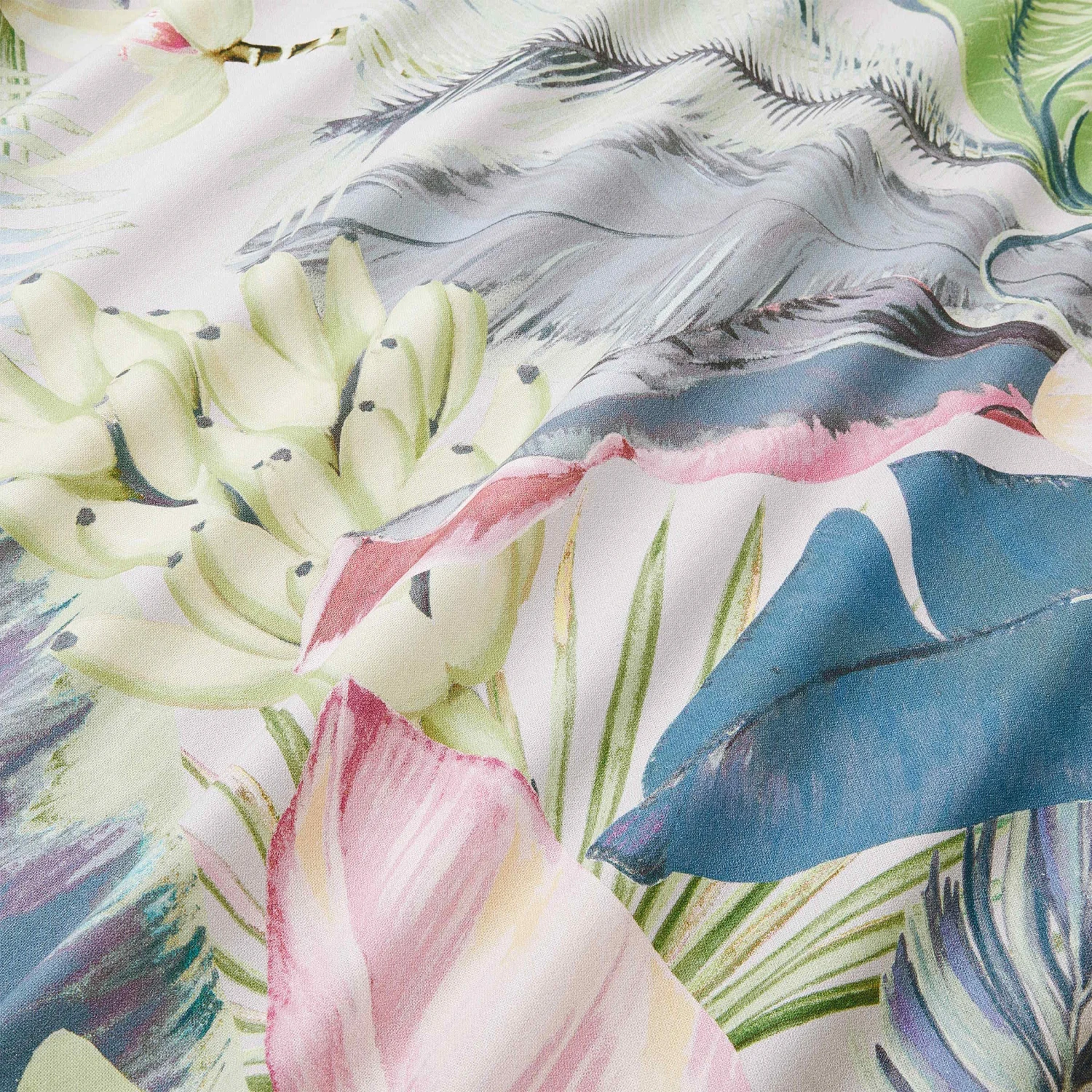 Tropische Muster und helle, pastellige Farben: Diese Kombination ist neu, überraschend und wunderschön bei der Beyond Bali Tischdecke 300 x 160 cm aus Baumwolle. Mit ihrem angesagten Design bringt diese Tischdecke Summervibes in Ihr Zuhause und lädt dazu ein, den Esstisch mit Holz, Rattan und anderen Naturmaterialien zu dekorieren. Die Beyond Bali Tischwäsche-Serie umfasst Tischdecken in verschiedenen Größen, einen Tischläufer und Stoffservietten.